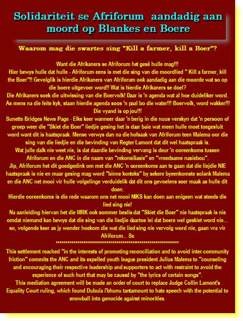 Gevolglik is hierdie Afrikaners van Afriforum ook aandadig aan die moorde wat so op die boere uitgevoer word!!