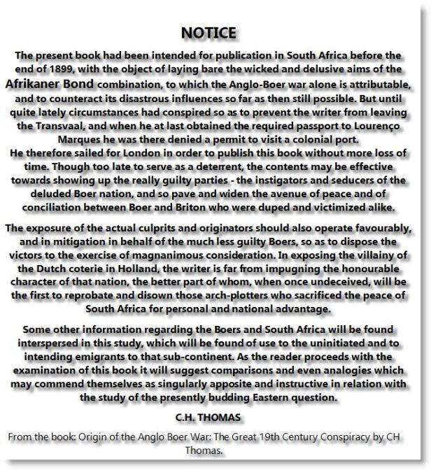 Ek maak al amper 4 jaar die stelling dat die Anglo Boereoorlog die gevolg is van die Cape Dutch se haat en vervolging van die Boervolk, en het al talle bewyse hiervan op die tafel gesit. Ek het ook al talle keer die afgelope 8 jaar genoem dat die Cape Dutch NOGSTEEDS die agendas wat hul voorgeslagte in 1864 saamgesweer en teen die Boervolk loods, en het talle bewyse daarvan ook op die tafel gesit.